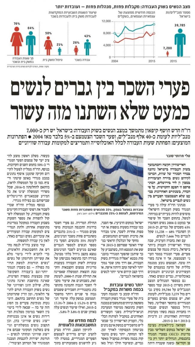 פערי שכר בין גברים לנשים – דה מארקר 4.12.17